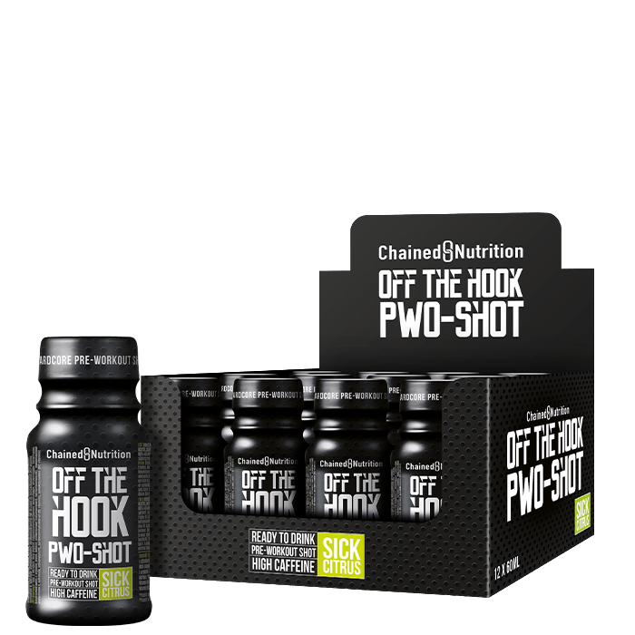 12 x Off The Hook PWO Shot, 60 mlOff The Hook PWO Shot är en potent prestationshöjare i shotformat. Piggar upp, ökar styrkan och uthålligheten.