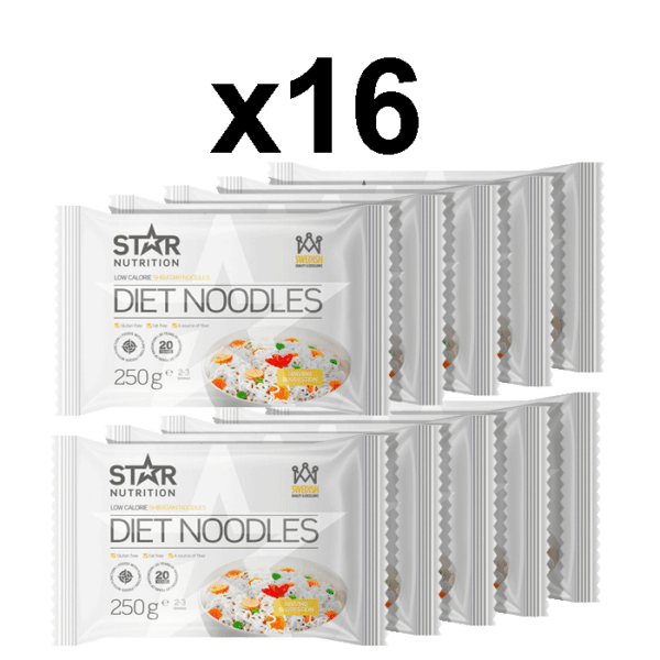 16 x Diet Noodles, 250 g: Low calorie shirataki noodles. Äntligen är de här, nudlarna som innehåller mindre än 10 kcal / portion! Produkten kan ej kombineras med rabattkod.