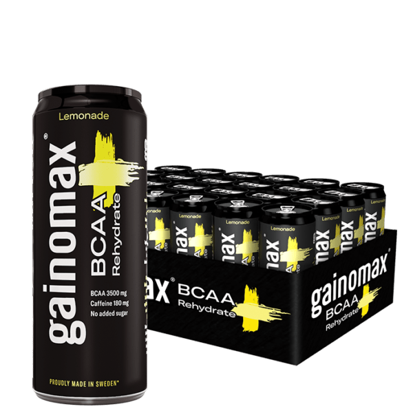 Gainomax BCAA+Rehydrate är en god kolsyrad dryck utan tillsatt socker och med 180 mg koffein per servering. Även med 3 500 mg BCAA samt vitamin B6 och B12.