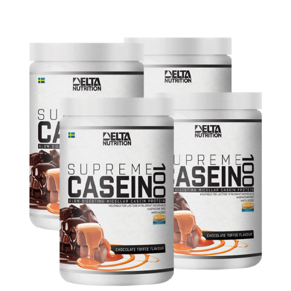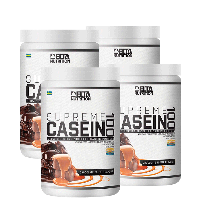 4 x Supreme Casein 100 är ett proteinrikt kasein från Delta Nutrition som ger en jämn och långvarig frisättning av aminosyror. En servering ger hela 24 g protein.