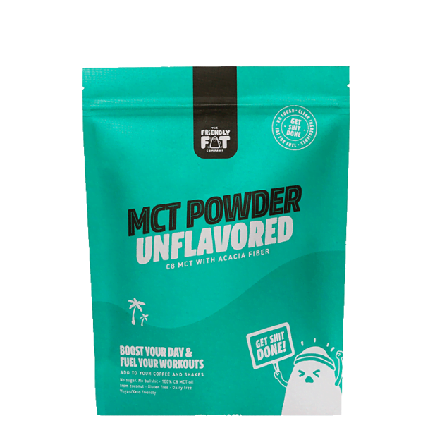 C8 MCT-pulver Naturell från The Fat Friendly Company är ett MCT fett i pulverform. Det löser sig lätt i varma drycker och har en naturell smak.