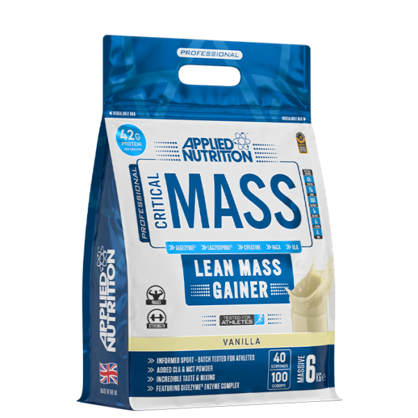 Critical Mass, 6 kg från Applied Nutrition är en avancerad gainer för viktuppgång med fler källor till protein samt med HMB, HICA, ALA, MCT, krom och kreatin.