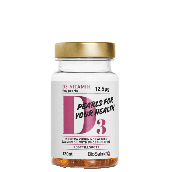 D3-vitamin Tiny Pearls är ett kosttillskott från BioSalma. Detta är laxolja tillsammans med vitamin D förpackat i små droppar vilket underlättar intaget. En bra produkt för dig som tycker normala kapslar är svåra att svälja.