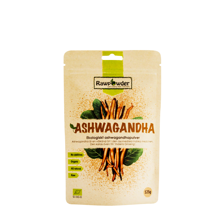 Ekologiskt ashwagandhapulver från Rawpowder innehåller ren ashwagandha och är befriad från andra tillsatser.