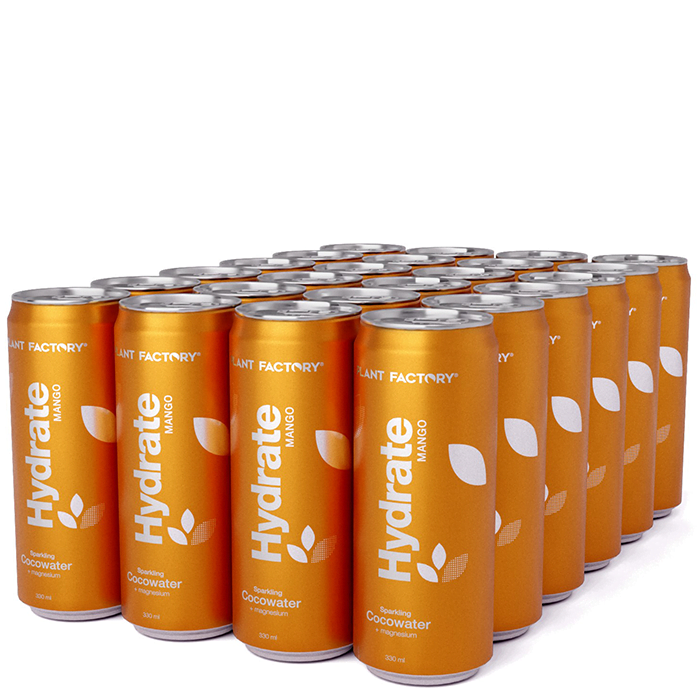 Plant Factory Hydrate är en delikat kolsyrad dryck som baseras på kokosvatten. Med extra magnesium och vitamin C, vegansk och helt fri från tillsatt socker och sötningsmedel.