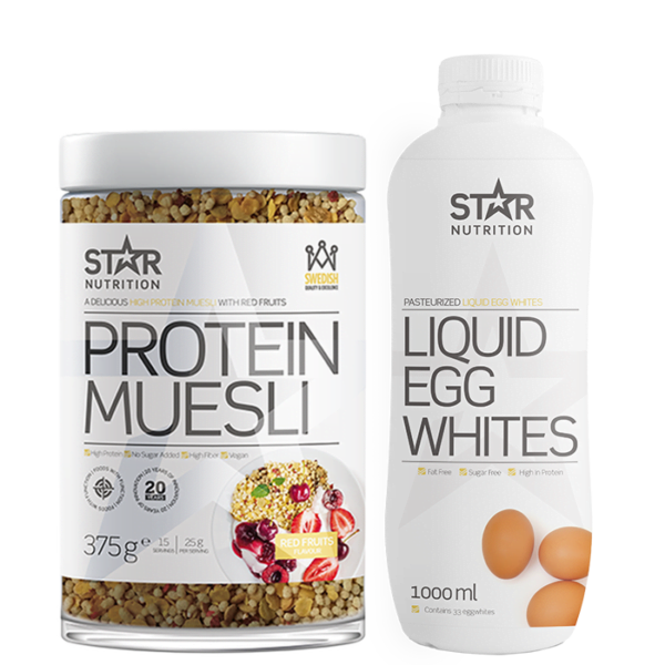 Flytande äggvita & Protein muesli! Använd som frukost, mellanmål eller till bakningen! Variatonerna på användsområdena väljer du själv.