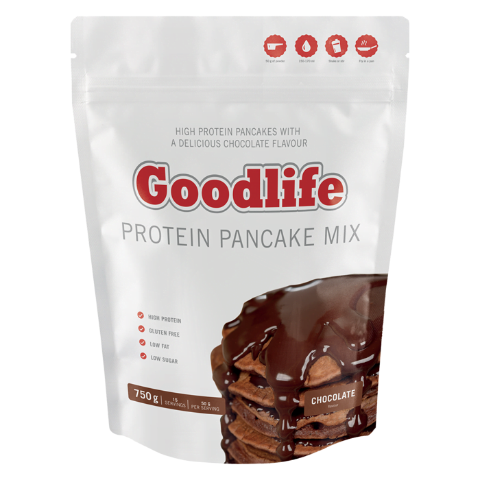 Goodlife Protein Pancakes är glutenfria, nyttiga och smakrika pannkakor med ett högt proteininnehåll och ett lågt sockerinnehåll.