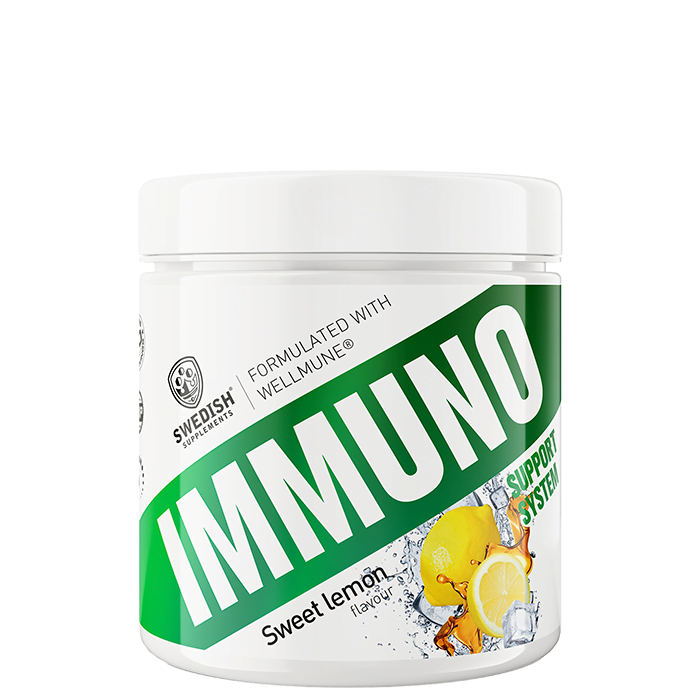 Immuno Support är ett kosttillskott från Swedish Supplements med bland annat vitamin C, zink och vitamin D som alla bidrar till att immunförsvaret fungerar normalt. I form av pulver.