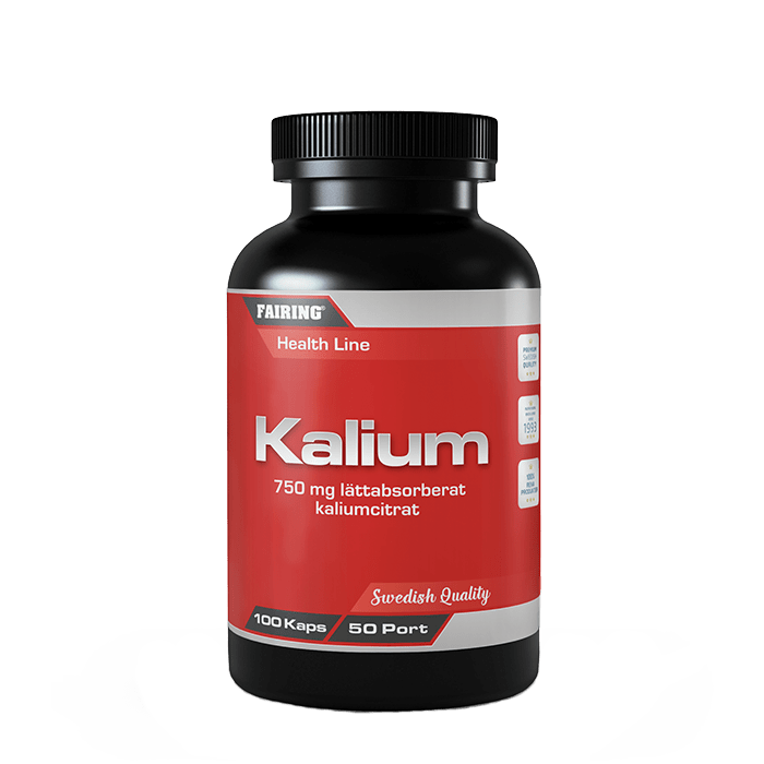 Kalium från Fairing är ett kosttillskott av den essentiella mineralen kalium som bland annat bidrar till nervsystemets normala funktion och normal muskelfunktion.