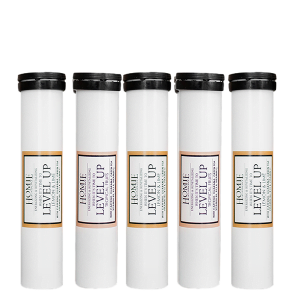 5-pack brustabletter med vitaminer, mineraler och naturligt koffein från guarana och grönt te.