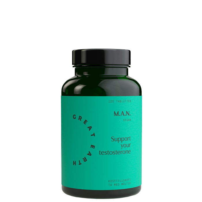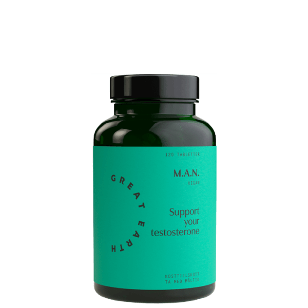 M.A.N. är ett kosttillskott från Great Earth. Med bland annat tribulus, maca och bockhornsklöver. Även med zink som bidrar till normala testosteronnivåer i blodet.