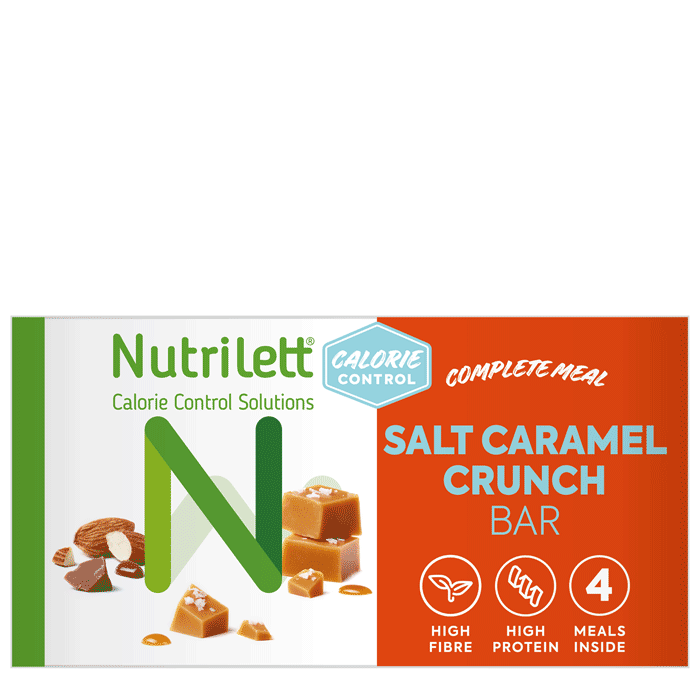 En krispig och förföriskt god måltidsersättningsbar med smak av salty carmel.