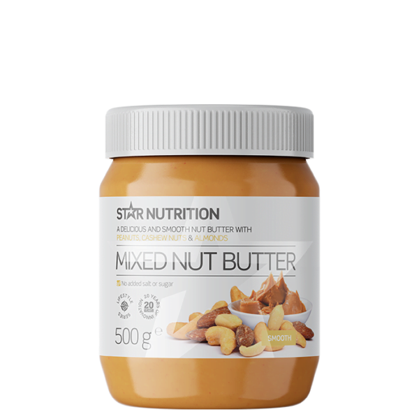 Mixed Nut Butter från Star Nutrition är ett delikat nötsmör bestående av jordnötter, mandlar och cashewnötter. Det är helt fritt från tillsatt från socker, salt och andra tillsatser.