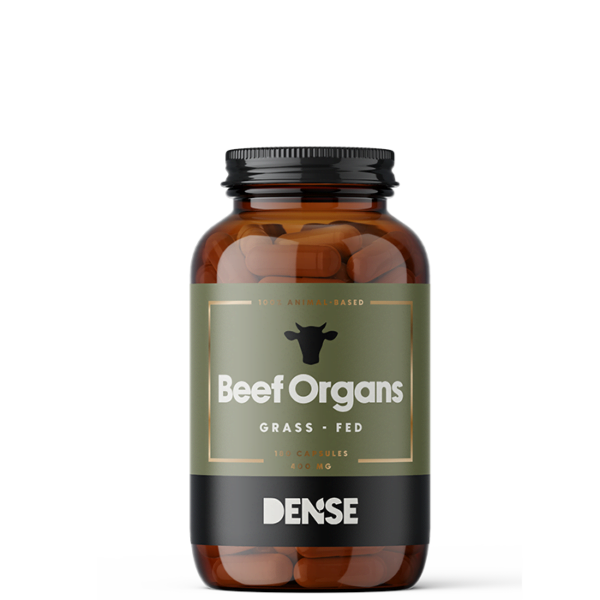 Beef Organs 180 kapslar är ett kosttillskott från Dense med lever, njure och hjärta från nötdjur som är gräsuppfödda. En förpackning räcker i 30 dagar.