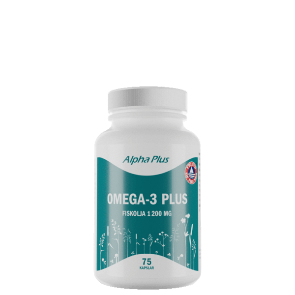 Omega-3 Plus från Alpha Plus är en högkoncentrerad naturlig fiskolja om 1 200 mg fiskolja per kapsel. Innehåller 960 mg omega-3-fettsyror, främst i form av EPA (eikosapentaensyra) och DHA (dokosahexaensyra), per kapsel.