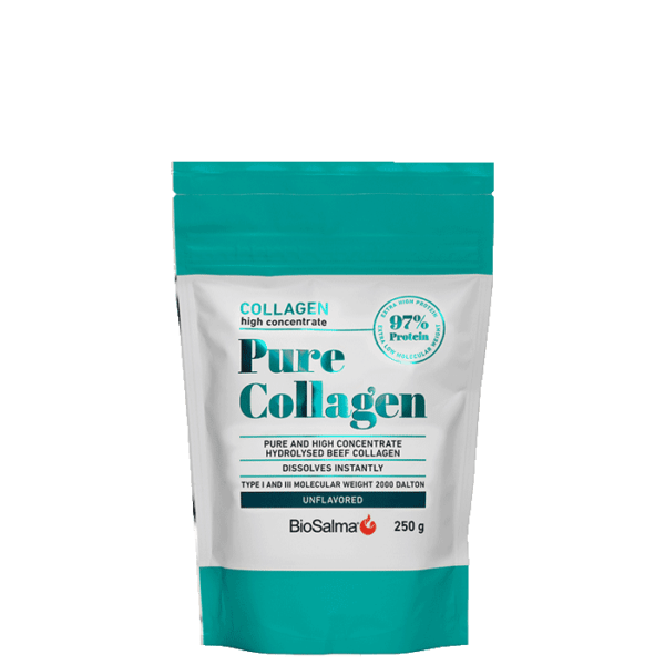 Pure Collagen 97% Protein från BioSalma är ett rent, hydrolyserat kollagenpulver som inte innehåller några tillsatser alls. Med god löslighet i både varma och kalla vätskor.