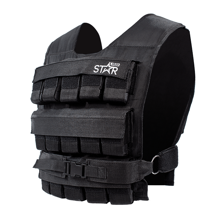 Star Gear Weighted Vest, 30 kg. Denna viktväst från Star Gear inkluderar 30 viktblock à 1 kg och är ett utmärkt redskap för dig som vill göra din träning effektivare och ännu mer utmanande. Vikterna fördelas jämnt runt överkroppen och hjälper till att öka vikten i övningarna på ett skonsamt sätt.