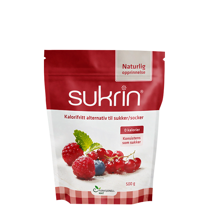 Sukrin från Funksjonell Mat är ett sockersubstitut som framställts ur sockeralkoholen Erythritol och som inte innehåller några kalorier. 100% naturlig produkt.