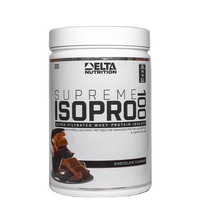 Supreme Isopro 100 från Delta Nutrition är ett vassleproteinisolat med låg halt fett och kolhydrater. Supreme Isopro löser sig mycket lätt i vatten och kommer i fler underbara smaker.