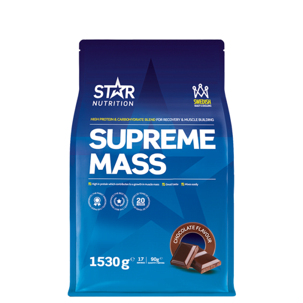 Supreme Mass från Star Nutrition är en gainer och återhämtningsprodukt för dig som idrottar mycket eller för dig som vill öka i vikt. Kvalitativt innehåll med hög halt protein och kolhydrater.