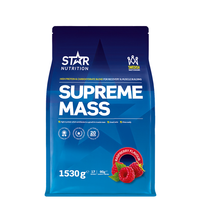Supreme Mass från Star Nutrition är en gainer och återhämtningsprodukt för dig som idrottar mycket eller för dig som vill öka i vikt. Kvalitativt innehåll med hög halt protein och kolhydrater.