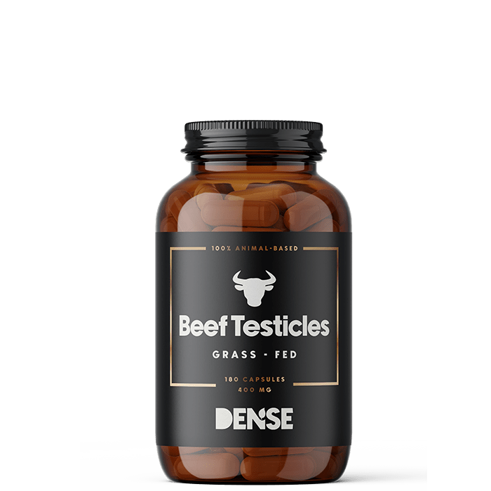 Beef Testicles 180 kapslar är ett kosttillskott från Dense med frystorkade testiklar och lever packat i kapslar. Ingredienserna kommer från gräsuppfödda nötdjur. En förpackning räcker i 30 dagar.