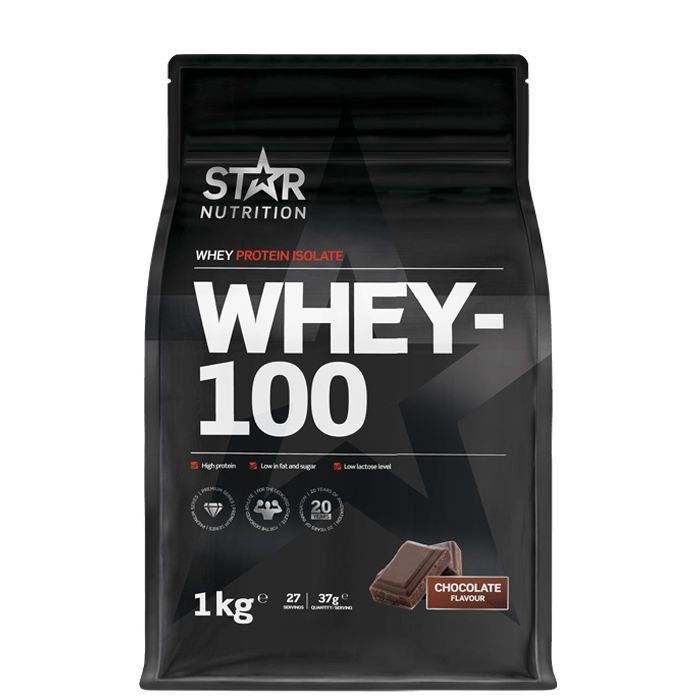 Whey-100 från Star Nutrition har nära ett 100 %-igt proteininnehåll och används i samband med träning för att öka eller bibehålla muskelmassan.