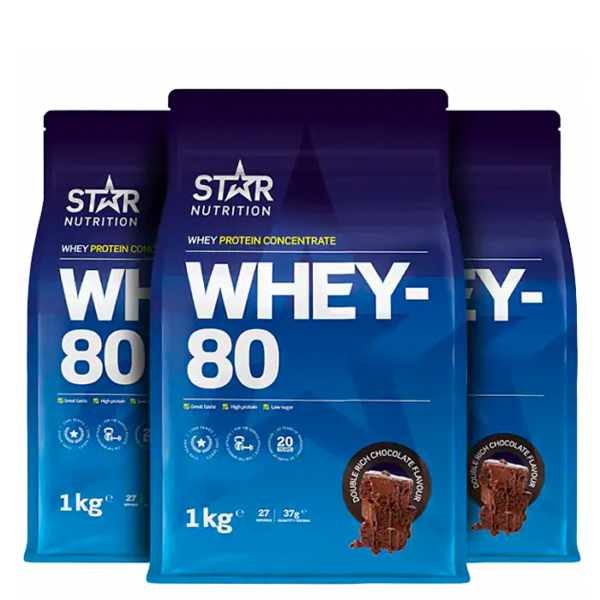 3 x Whey-80, 1 kg: Testa smakerna på Nordens mest sålda proteinpulver. Blanda fritt bland 24 smaker, omväxling förnöjer!